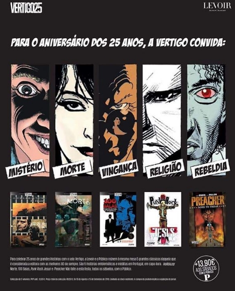 Lançadas em parceria com o jornal Público, estas 5 obras emblemáticas do selo de culto Vertigo, começam a estar disponíveis a partir do dia 18 de Agosto. Cada volume terá um custo de 13,90€ e são: