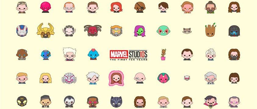 Poster dos 10 Anos da Marvel Studios com mais de 100 personagens do UCM em amoticons